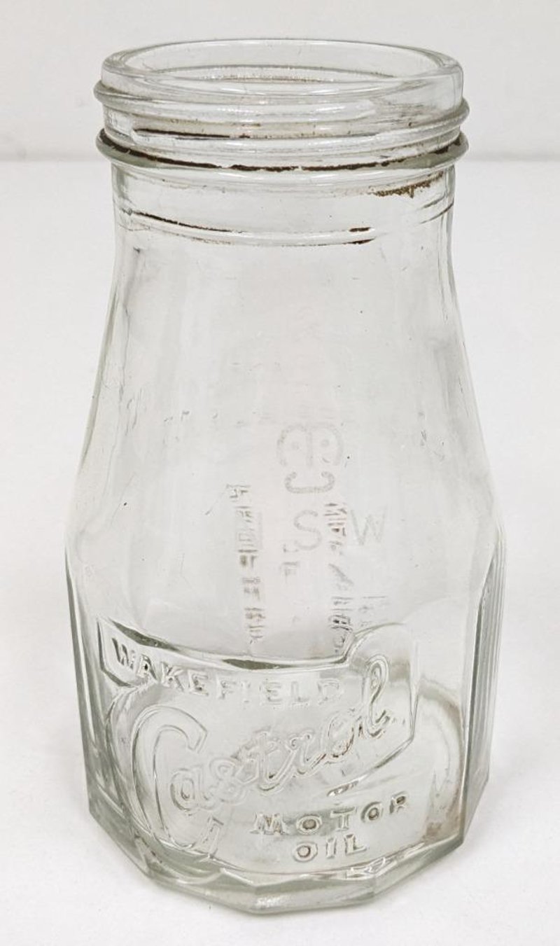 CASTROL WAKEFIELD EMBOSSED GLASS OIL BOTTLE