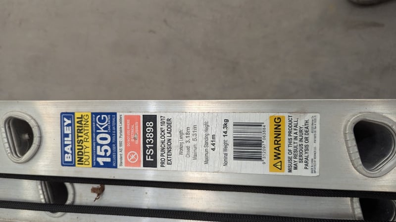 Extension Ladder, Bailey, Model: GS13808, 150 kg, Pro Punch Lock