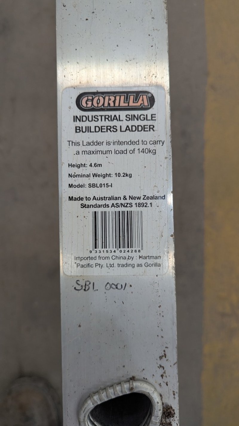 Industrial Single Builders Ladder, Gorilla, Model: SBL015-1, 140 kg, Height 4.6M