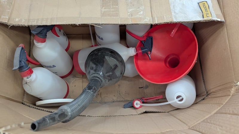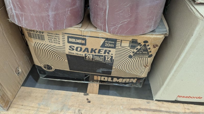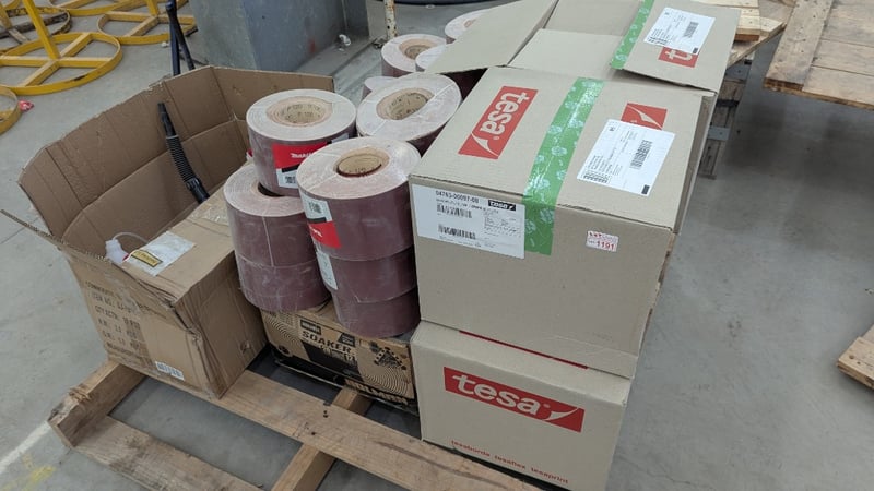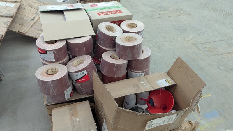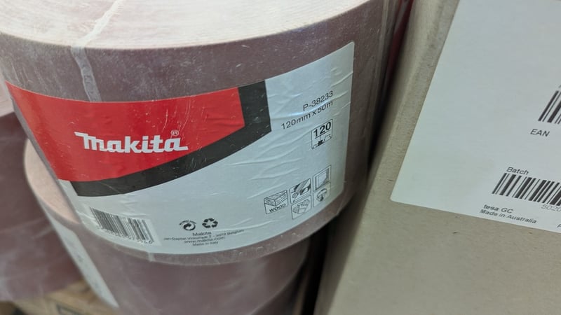 Various Items, Includes P120 Makita Sandpaper, Slit Log Tape, Hose, Spray Bottles and More, Quantity Per Pallet