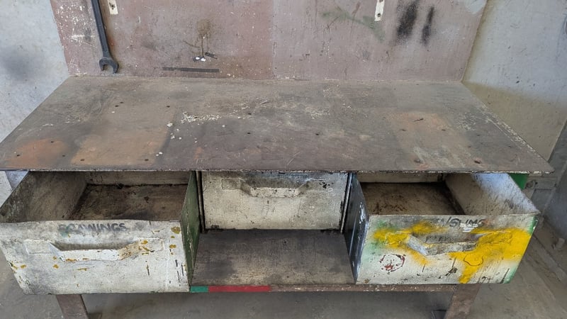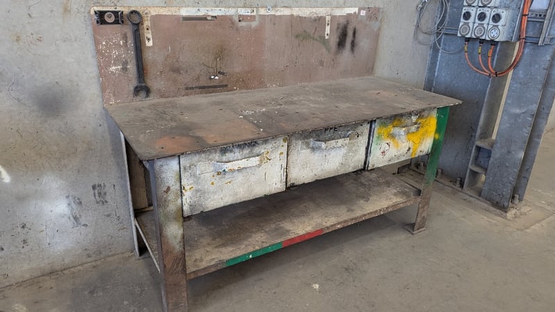 Metal Work Bench, 3 Pull Out Drawers, Shelf Under, Backing Board, Dimensions: 137cm(H)×184cm(W)×85cm(D)