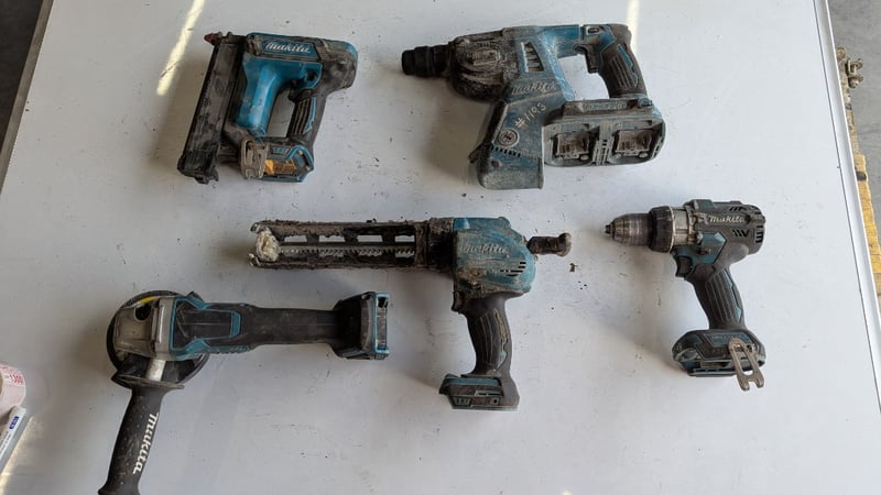 Makita Cordless Bundle, Includes Grinder, Various Drills, Staple Gun and More, Quantity 5