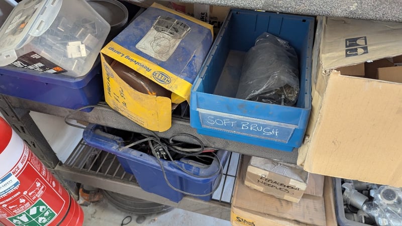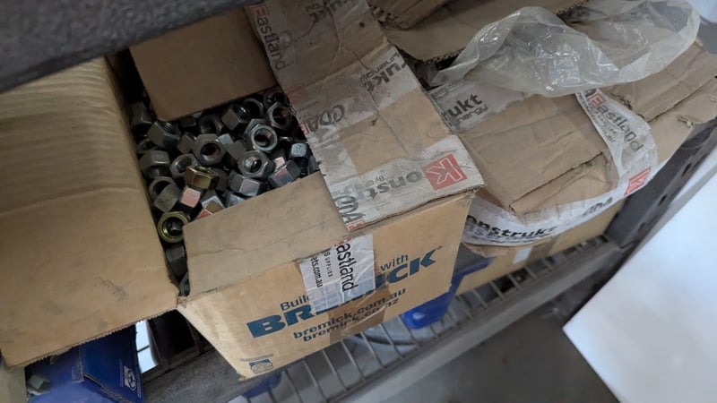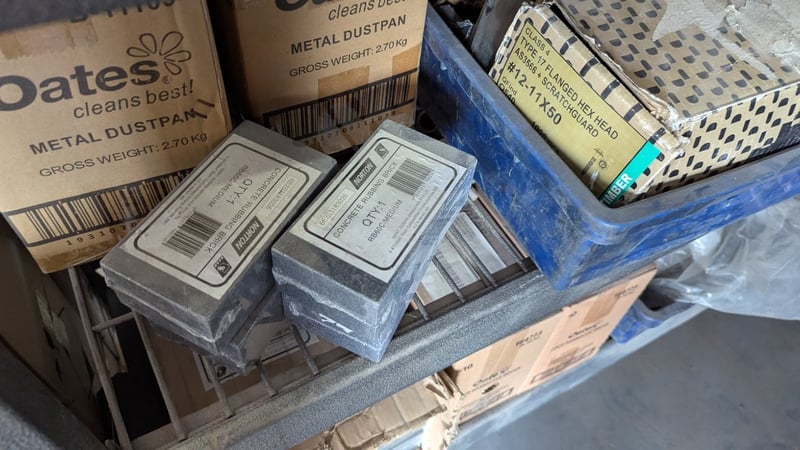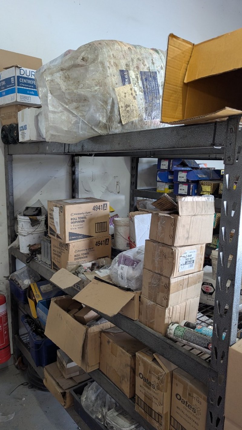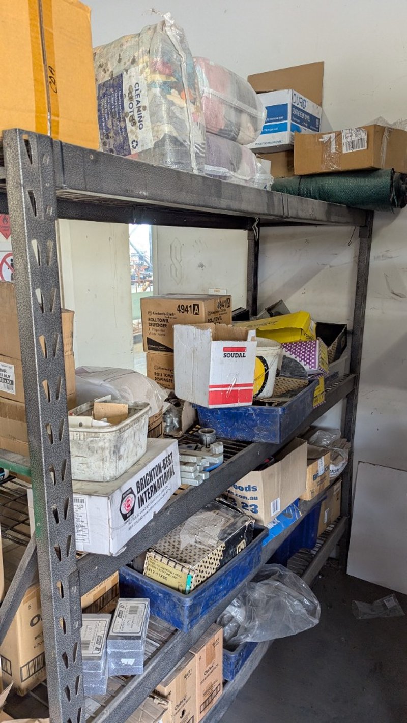 Contents of Shelving Unit, Including Nuts & Bolts, Wire Brushes, Weed Mat, Connections and More, Quantity Per Lot