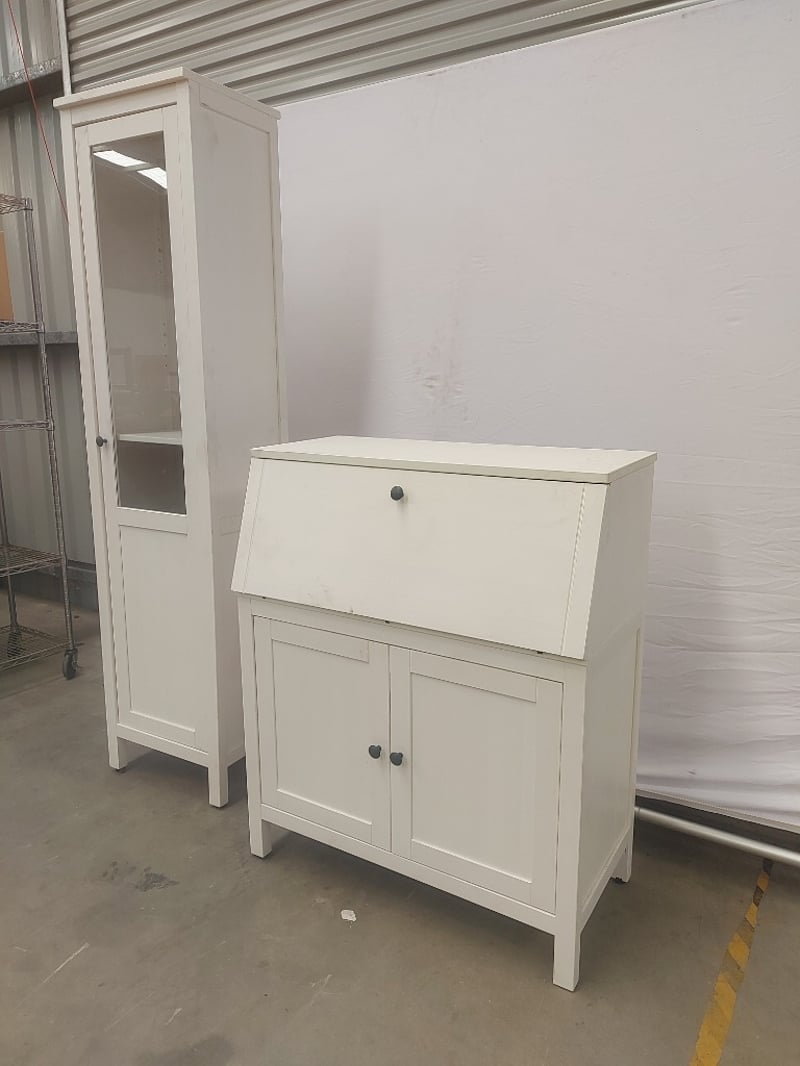 Large Glass Door Cabinet With 5 shelves, Secretary Desk, Dimensions 108cmH×89cmW×45cmD Quantity 2Sold A Lot