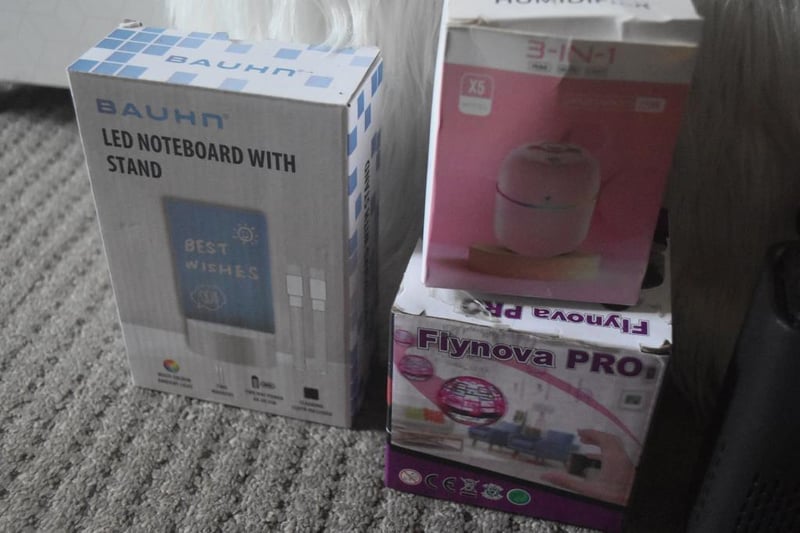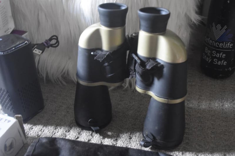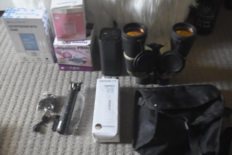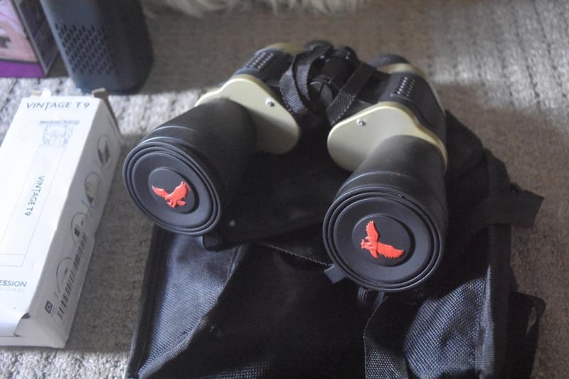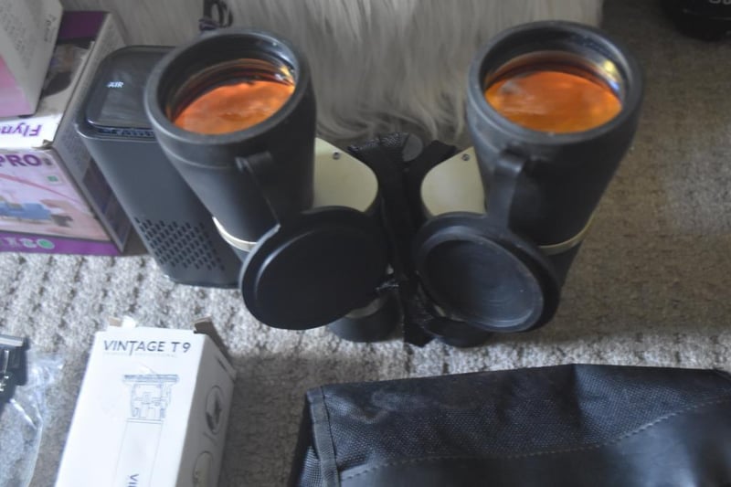 Binoculars in case, 7x50, orange coated lenses for better clarity, brand new Professional Trimmer, Black Dragon Design, with USB cable/accessories in box, and assorted items (LED board,Humidifier, LED Mini Drone)