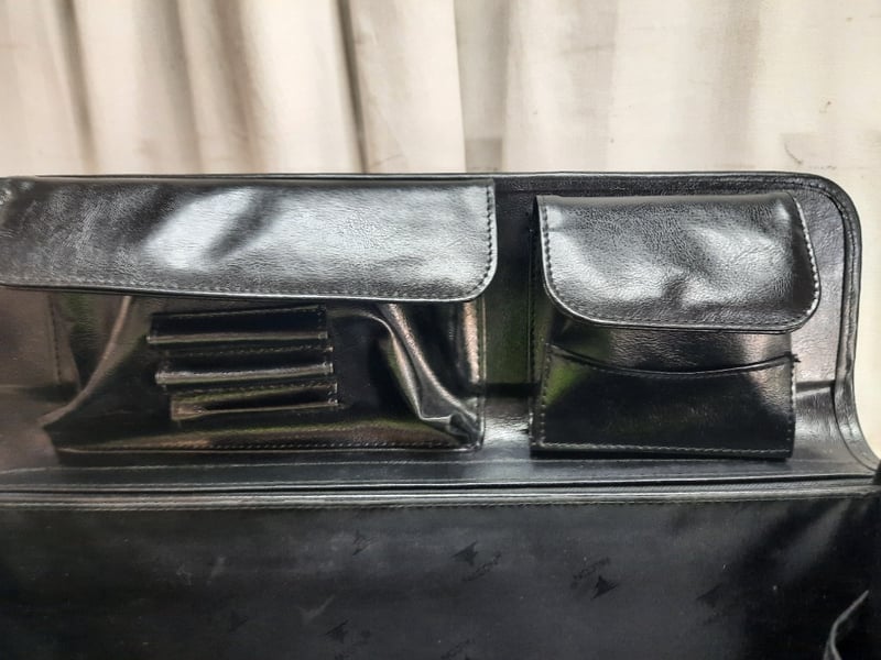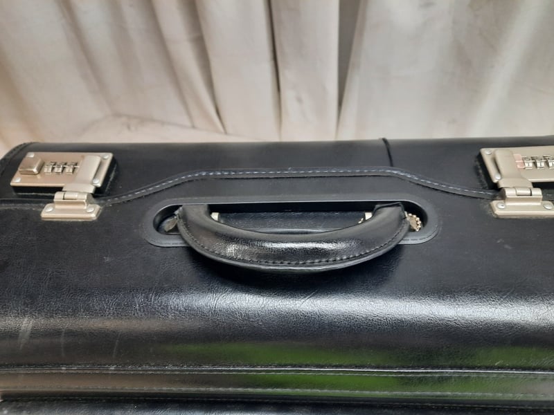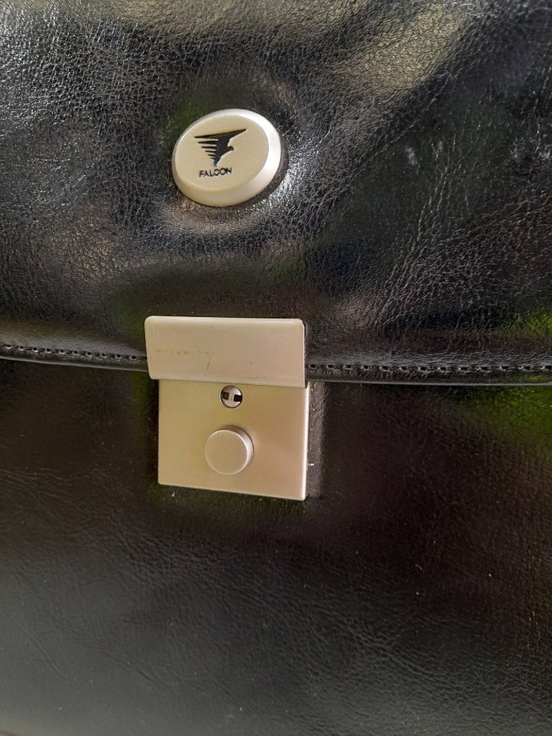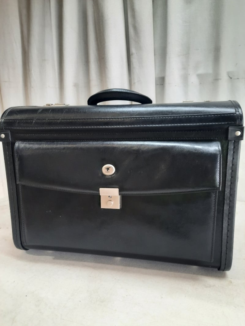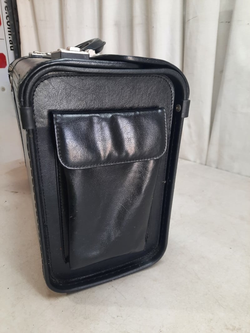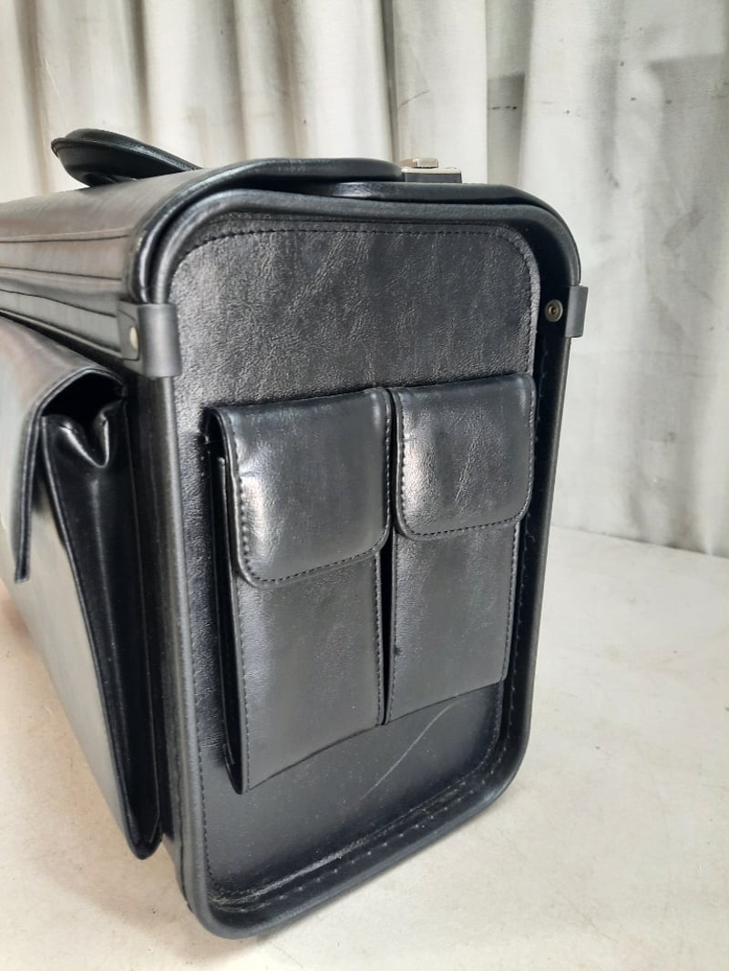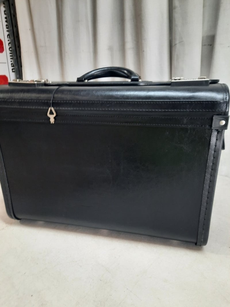 Leather 2-Section Briefcase, Combination Lock Keys included for front pocket, however the opening is jammed Dimensions: H30cm L50cm W20cm