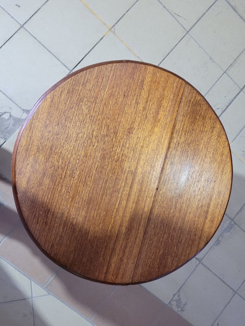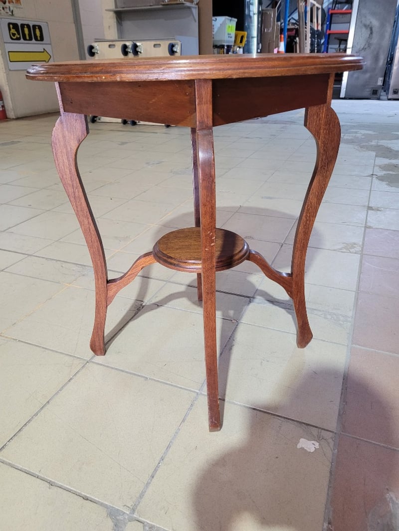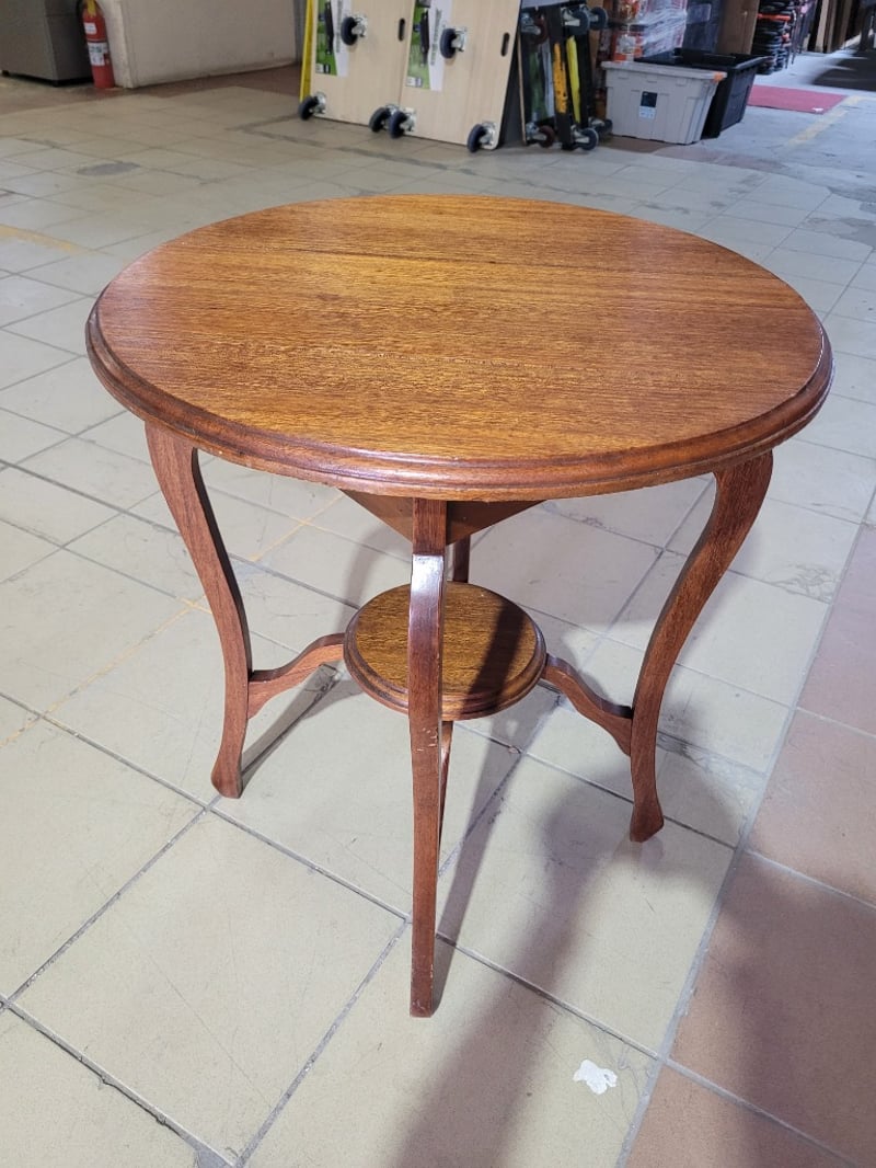 Round occasional table featuring elegantly shaped legs and a small lower shelf, Brown Timber Dimensions: L60 x W60 x H70cm