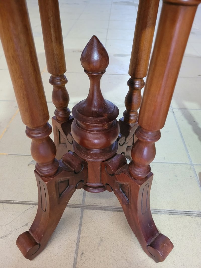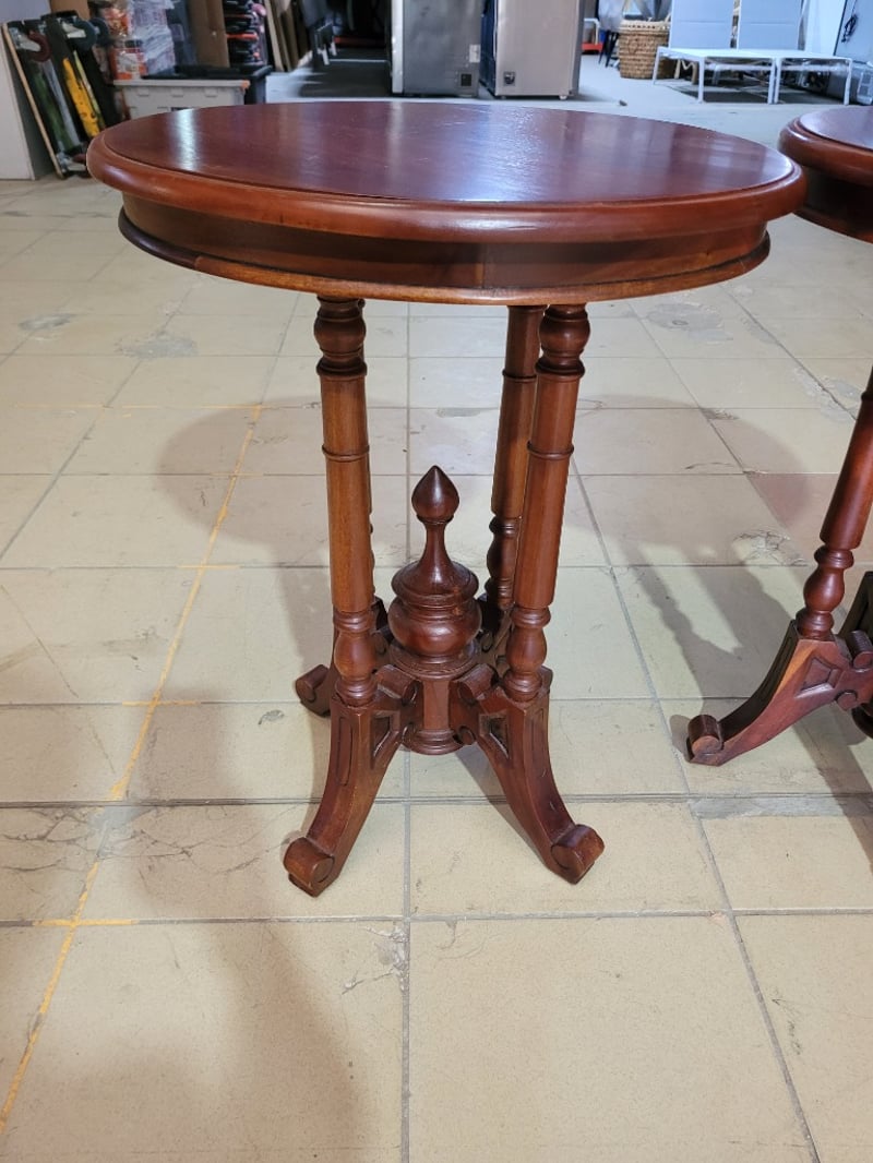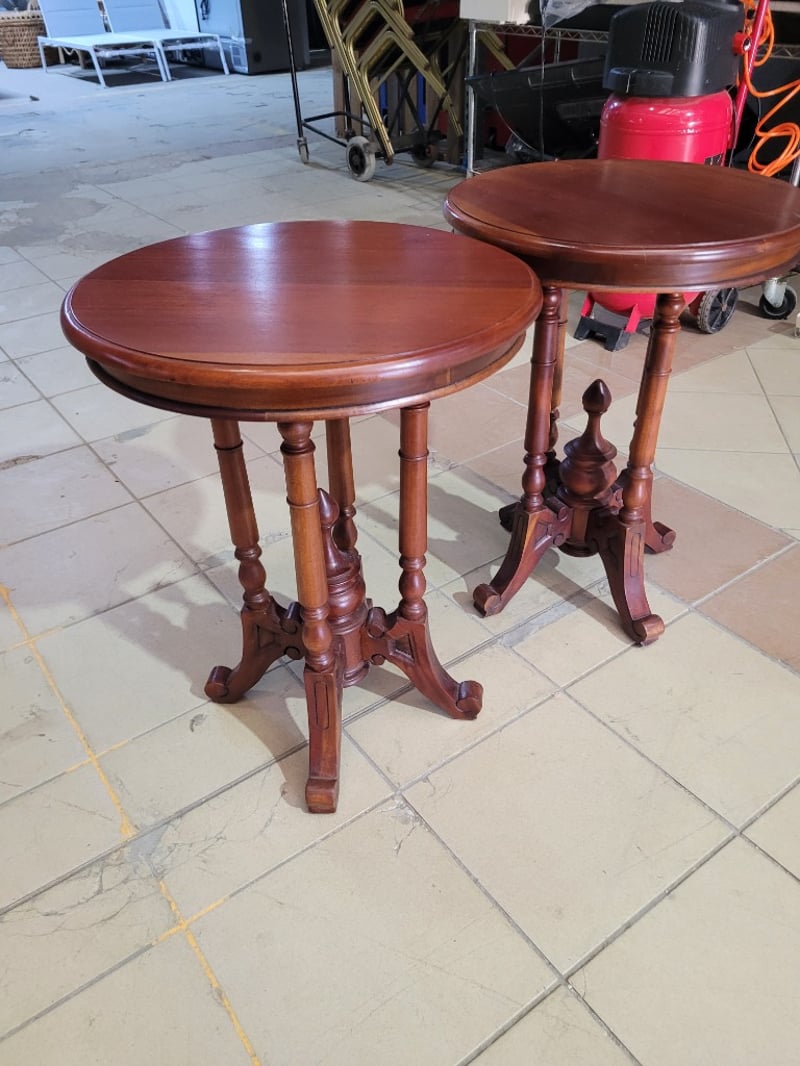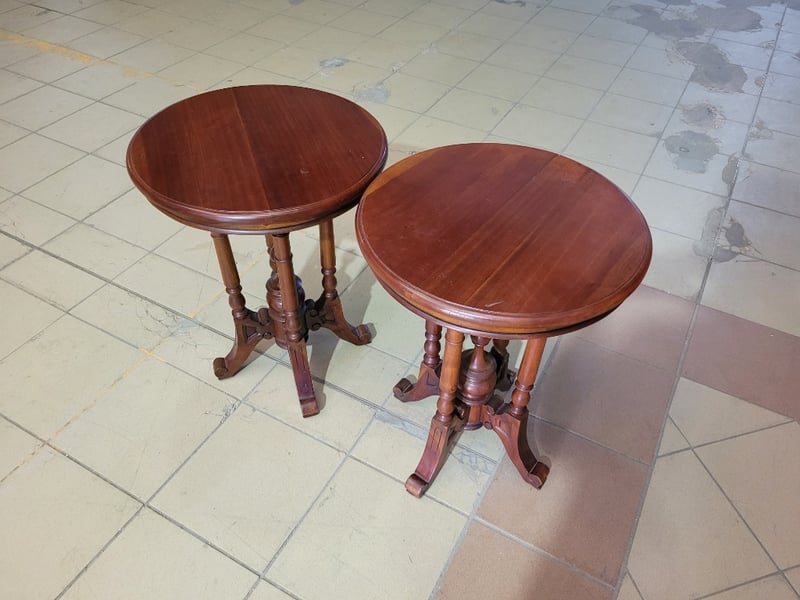 Side Table is crafted from mahogany wood Dimensions: L50 x W50 x H65cm SOLD AS LOT