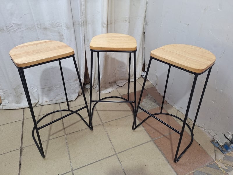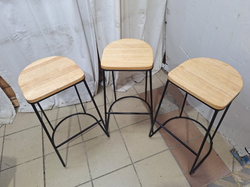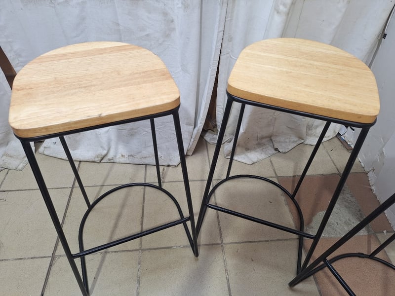 Set Of Bar Stools, Timber & Metal Style, Natural & Black Finish Dimensions H:70cm W:39cm D:43cm SOLD AS LOT