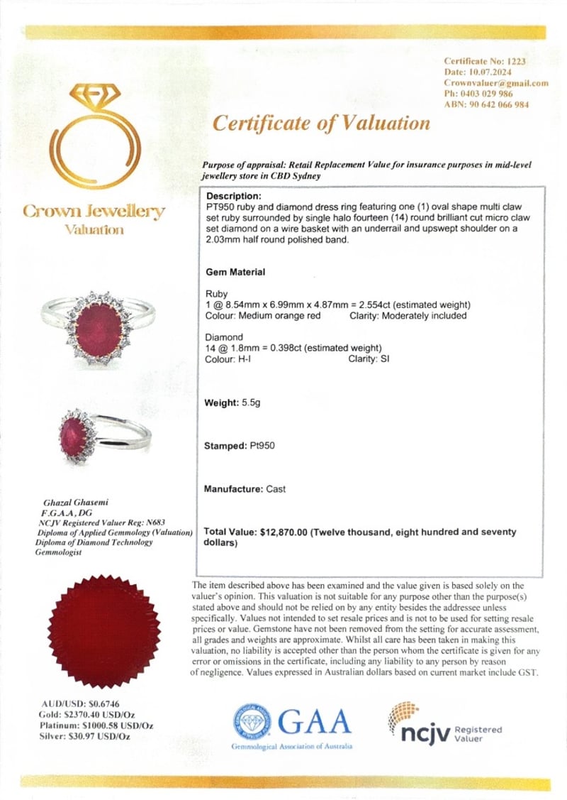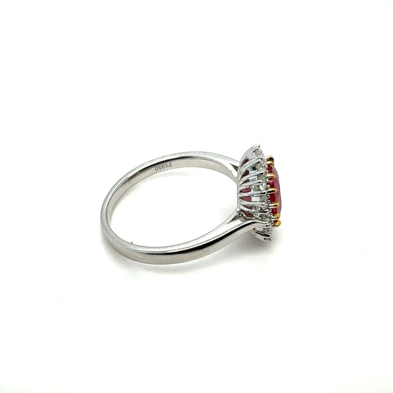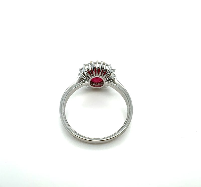 PT950 OVAL CUT RUBY AND DIAMOND RING