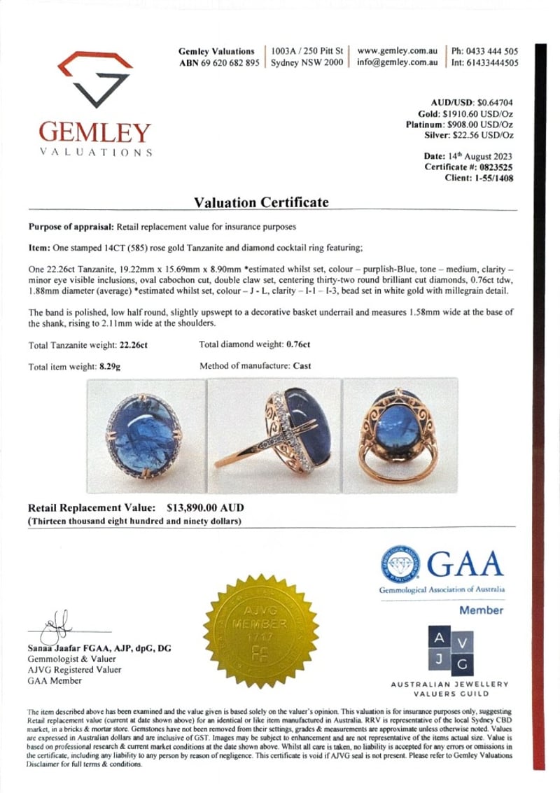 This valuation has been conducted by an independent third-party professional. The valuation amount is an assessment by the issuing valuer and does not reflect the auction value of the item.