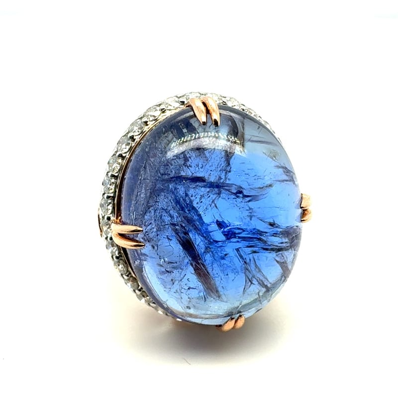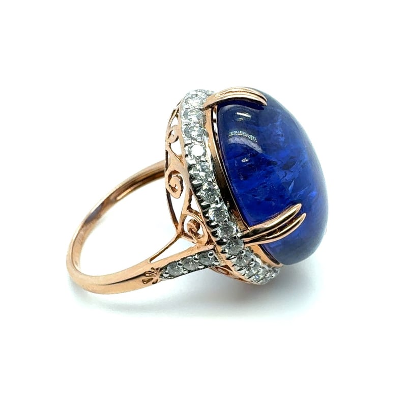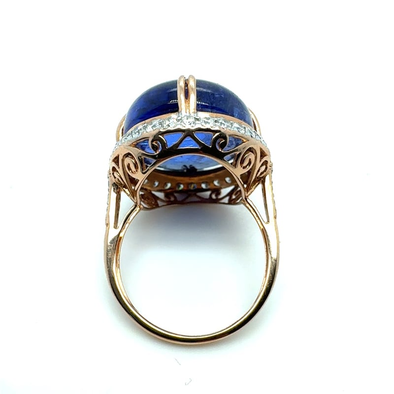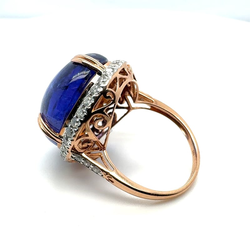 14CT ROSE GOLD OVAL CUT CABOCHON CUT TANZANITE AND DIAMOND RING