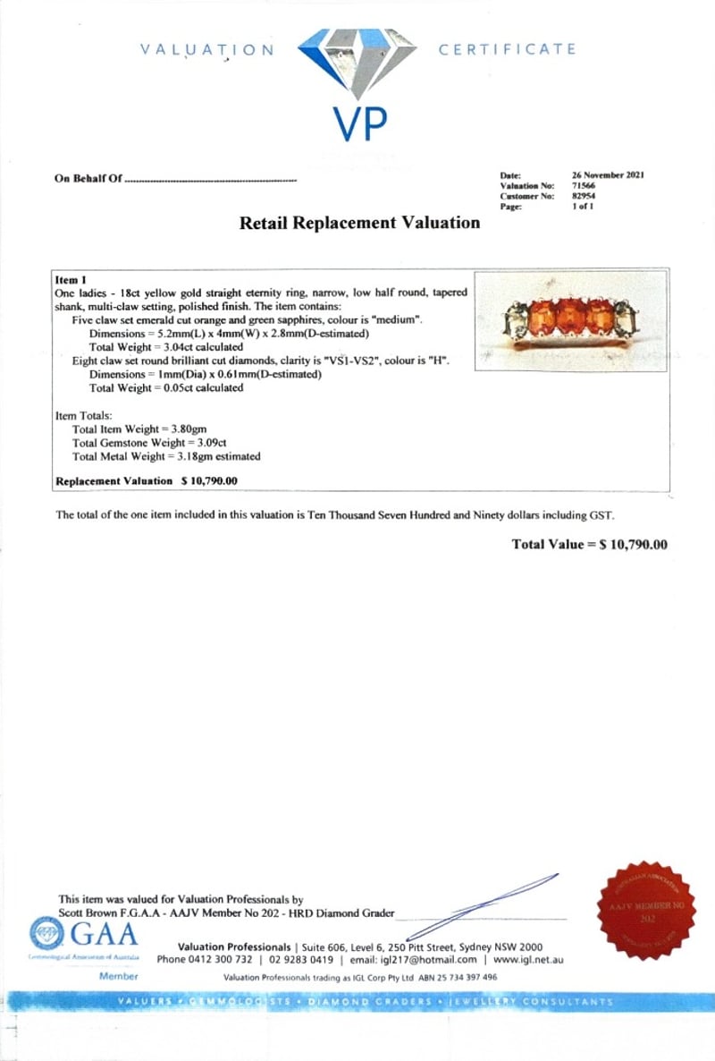 18CT YELLOW GOLD EMERALD CUT MULTICOLOUR SAPPHIRE AND DIAMOND RINGS = 3.04CtD = 0.05CtVal #71566Condition: Good - Refer To ImagesThis valuation has been conducted by an independent third-party professional. The valuation amount is an assessment by the issuing valuer and does not reflect the auction value of the item.Any inquiries regarding the valuation should be directed to the issuing valuer (refer to contact details on the certificate), as Lloyds Auctions has no affiliation or influence over the valuation, the valuer, or the stated amount.Insurance Replacement Valuation Amount: $10,790.00488487+68