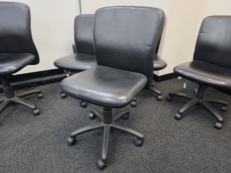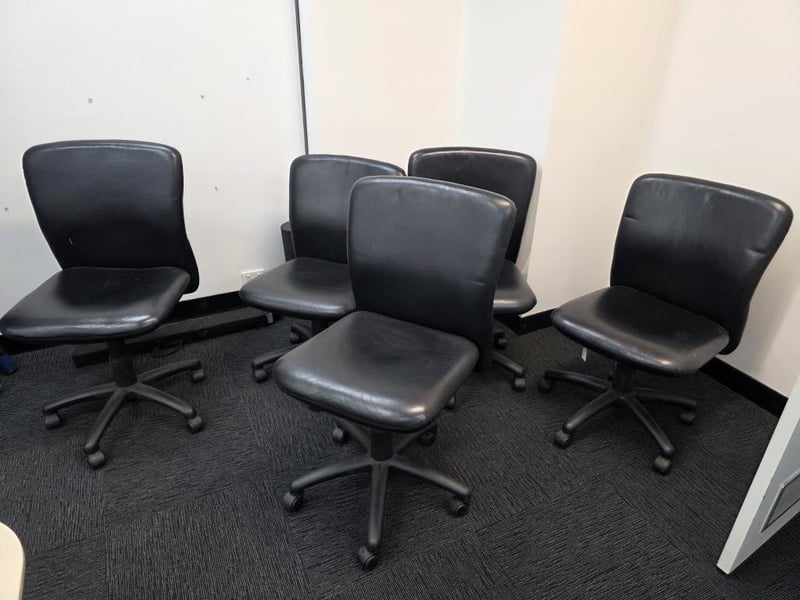 Set of 5 black leather adjustable office chairs SOLD AS LOT