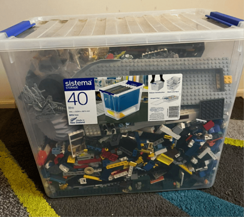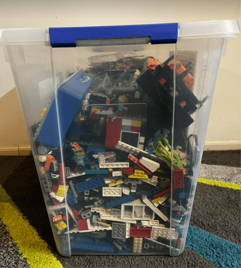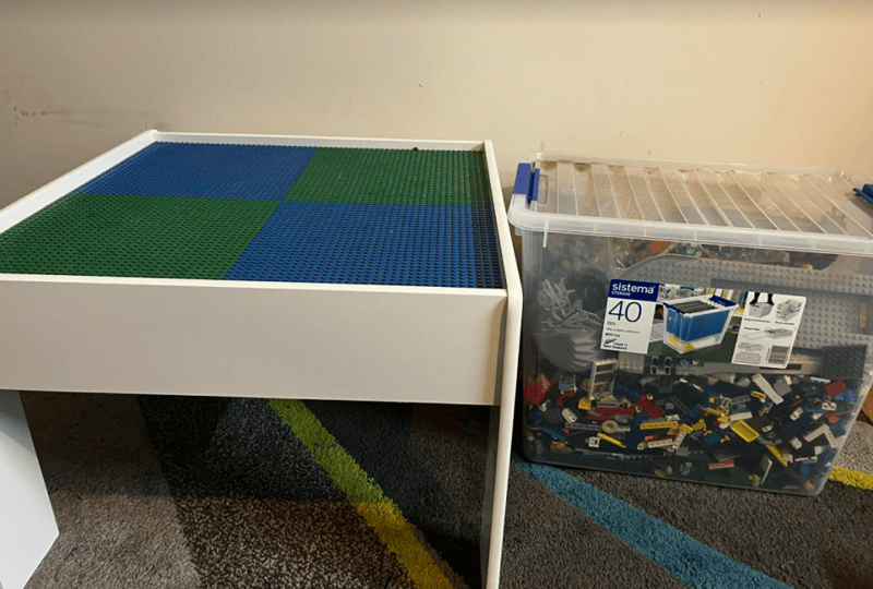 White Lego Tabel & Container of Lego. Refer to images