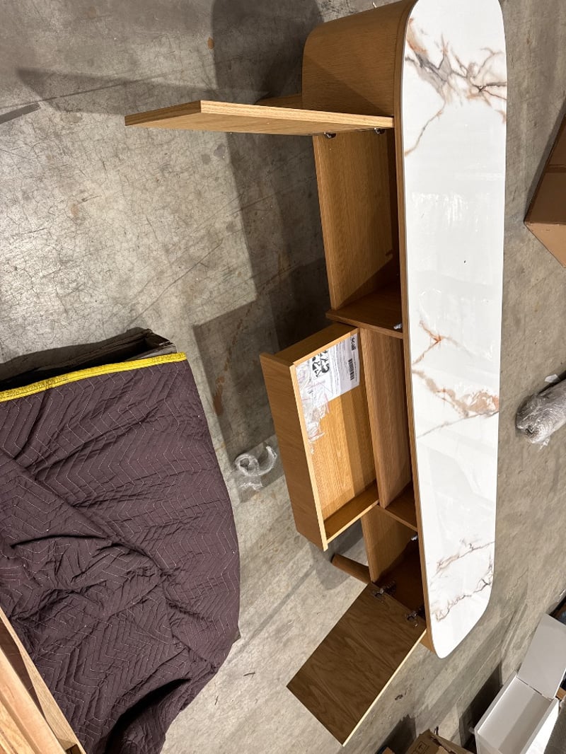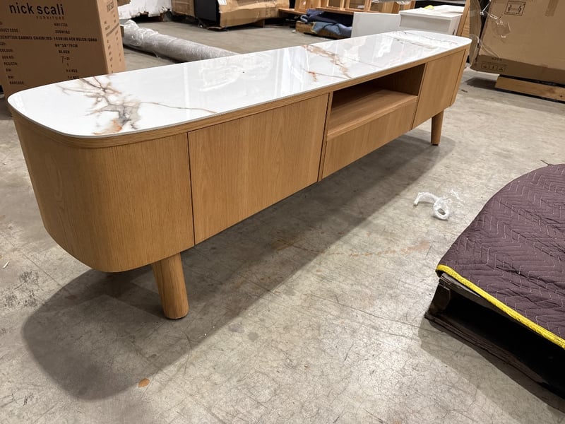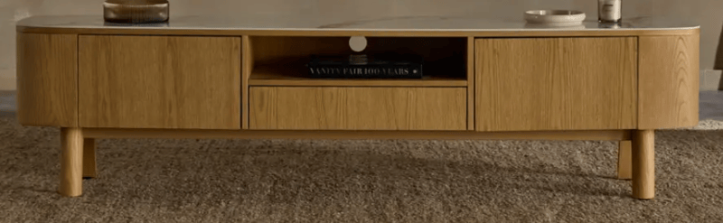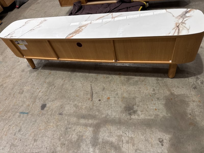 RRP: $2890, Tv Unit, Oak timber with Ceramic top.