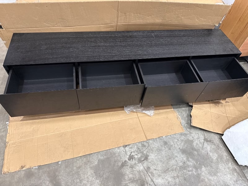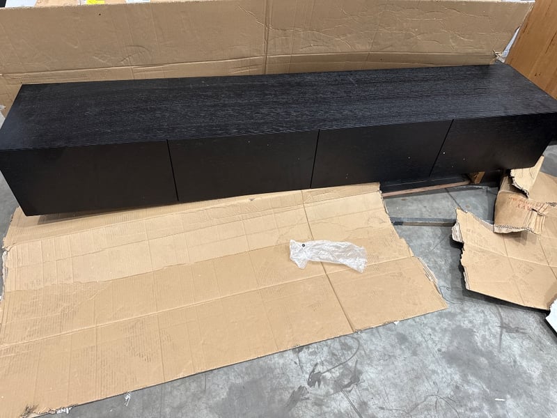 RRP:$1295, Tv Unit, Smoked Oak with Solid Ash Geometric legs. High design.