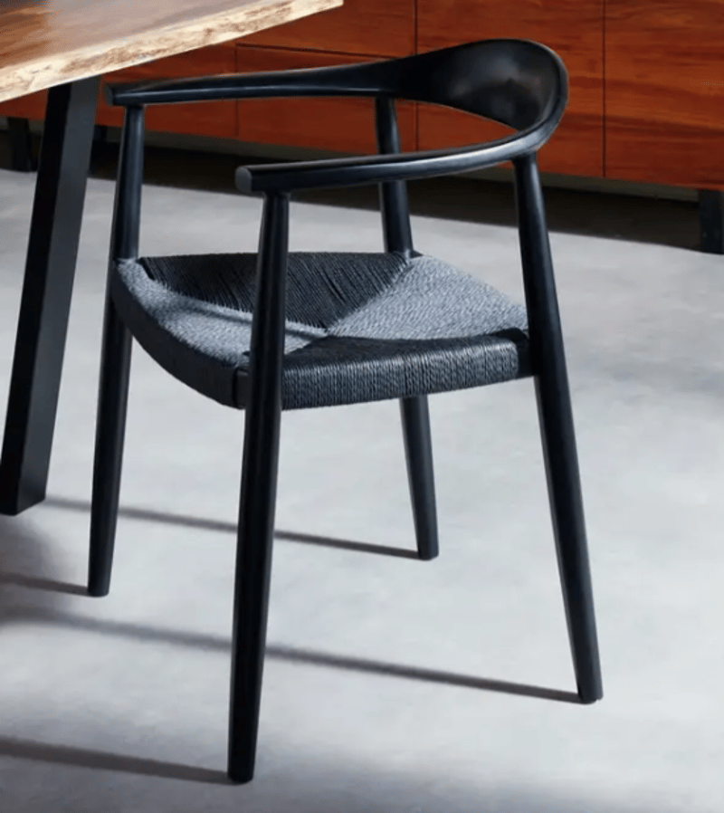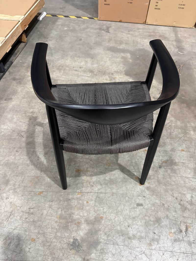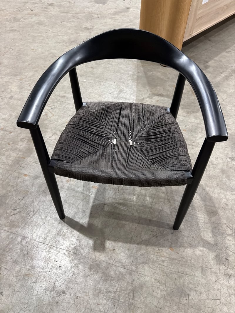RRP: $390ea Chairs, Solid Beech Wood frame with Weaved Cord. Approx Dimensions: 64W x 56H x 79D Quantity: 6 chairs, Sold as lot.