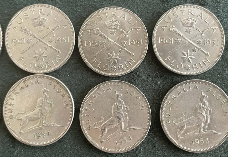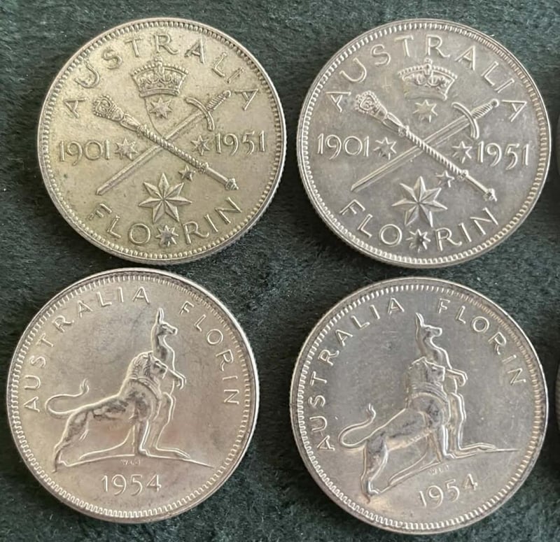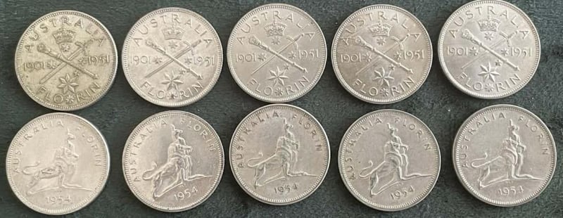 10X AUSTRALIAN COMMEMORATIVE FLORINS (5X 1951 AND 5X 1954)