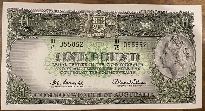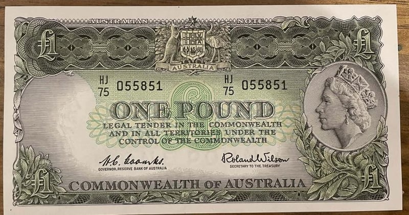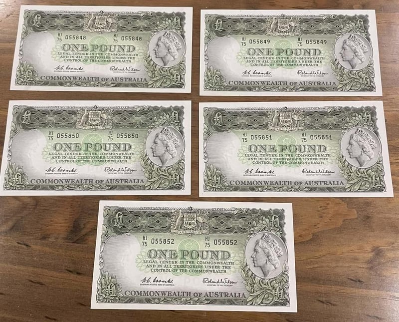 5X UNC CONSECUTIVE AUSTRALIAN 1 POUND NOTES 5X Consecutive Numbered Unc Notes Coombs/Wilson 488511+2
