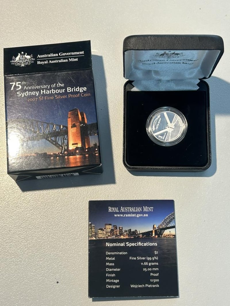 2007 ONE DOLLAR SYDNEY HARBOUR FINE PROOF SILVER COIN IN CASE 11.66 Grams Fine Silver Condition: Proof 233553+9
