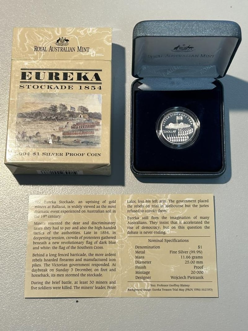 2004 OEN DOLLAR EUREKA STOCKADE FINE PROOF SILVER COIN IN CASE 11.66 Grams Fine Silver Condition: Proof 233553+11