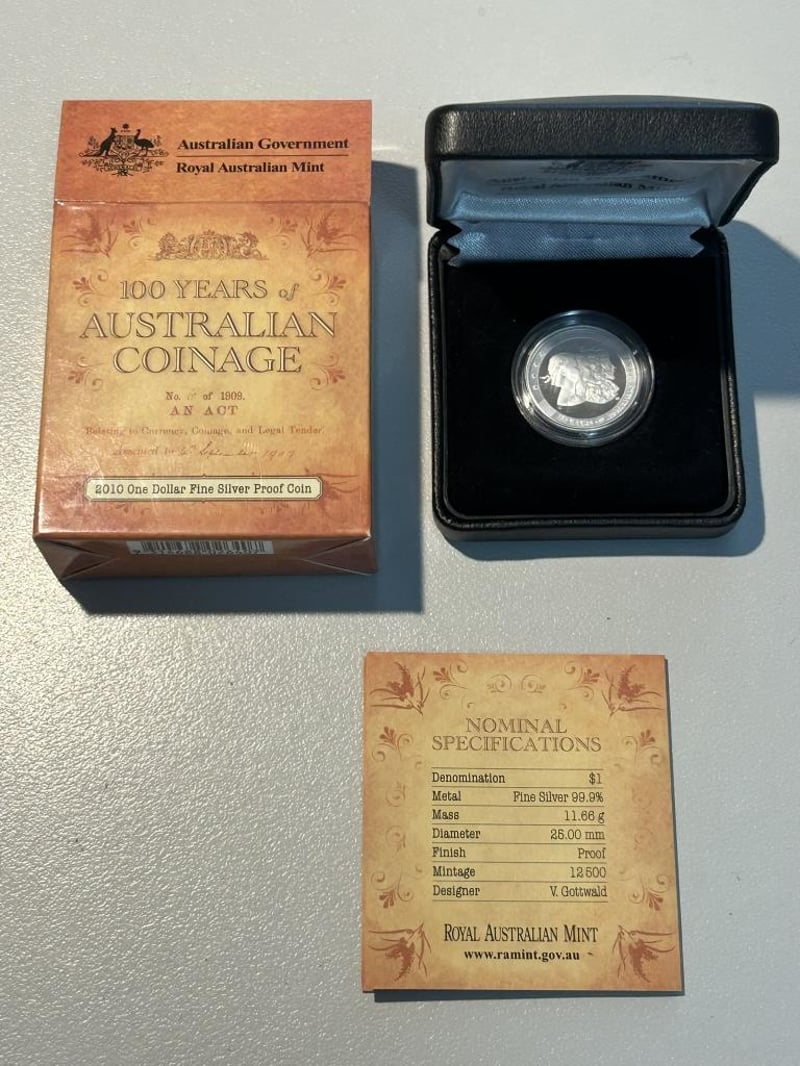 2010 ONE DOLLAR AUSTRALIAN COINAGE FINE PROOF SILVER COIN IN CASE 11.66 Grams Fine Silver Condition: Proof 233553+12
