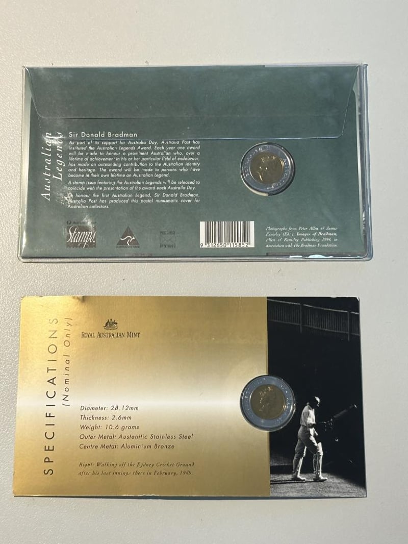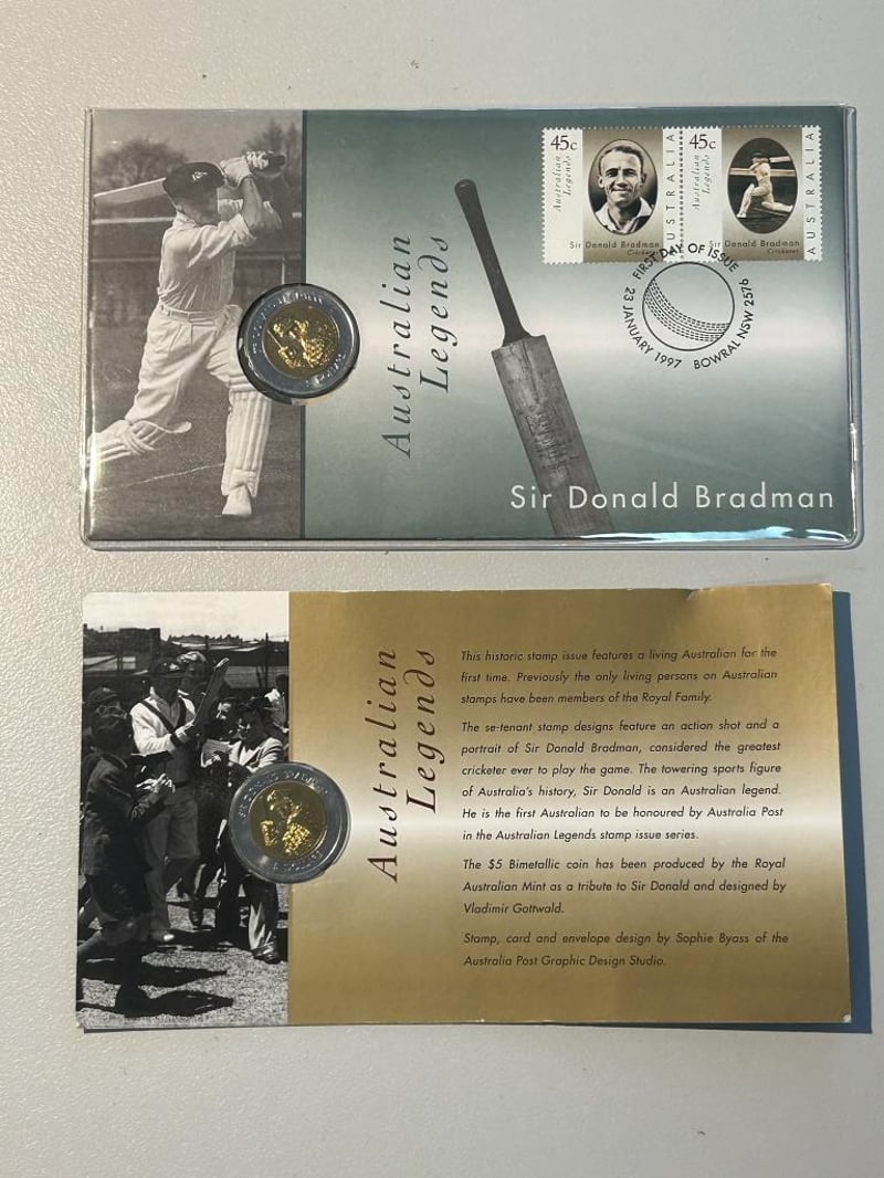 2 X 1997 FIVE DOLLAR SIR DONALD BRADMAN COIN Condition: Unc233553+22