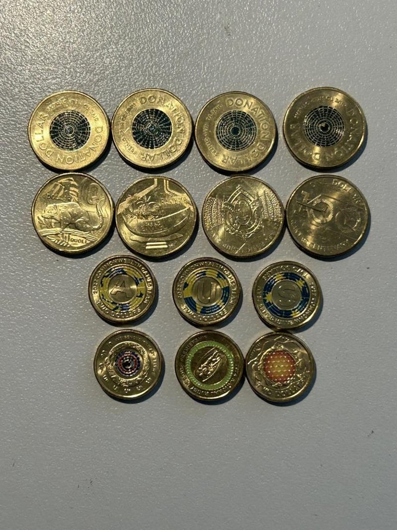 MIXED LOT OF COLOURED ONE AND TWO DOLLAR COINS 6 X $2 Coins And 7 X $1 CoinsCirculated Condition 233553+26