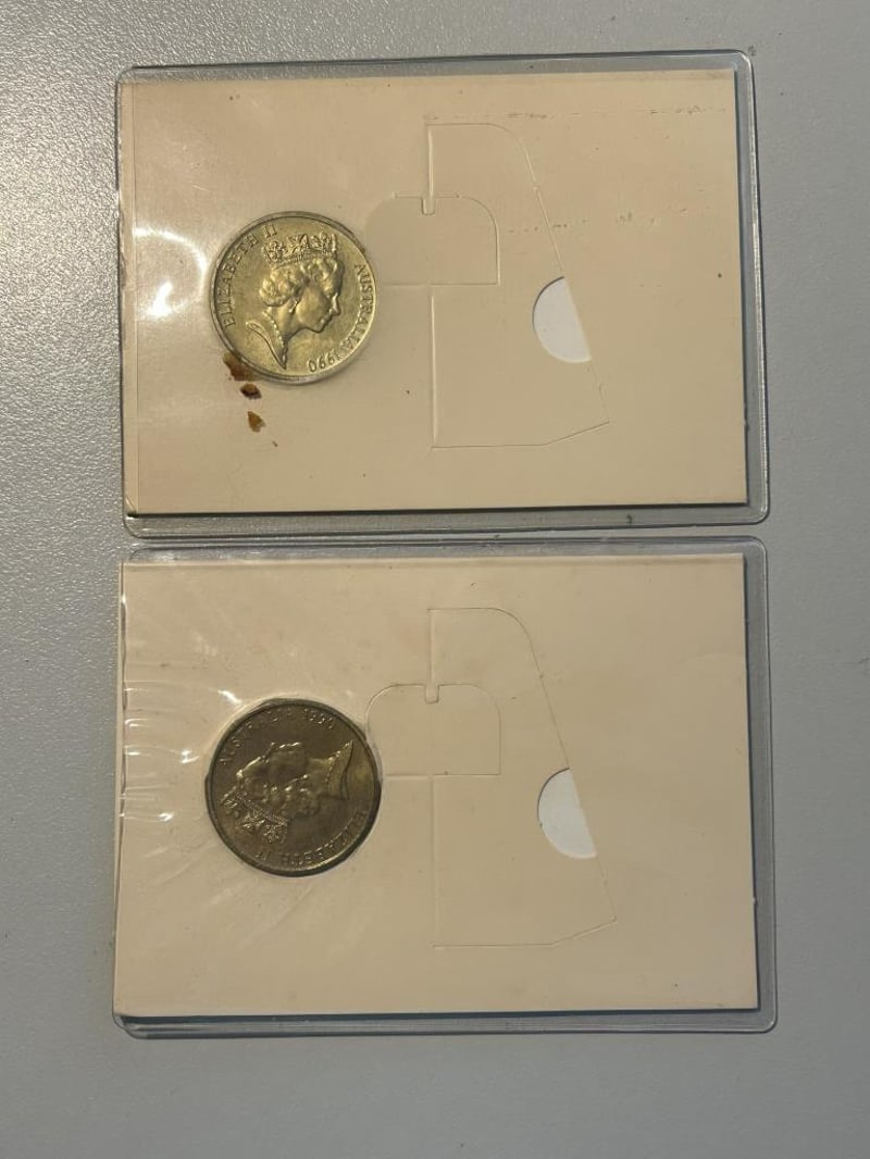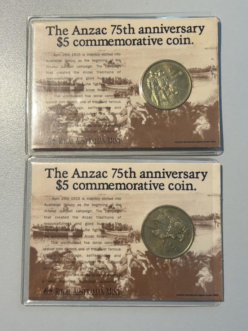 2 X 1990 FIVE DOLLAR COINS IN CARD 233553+44