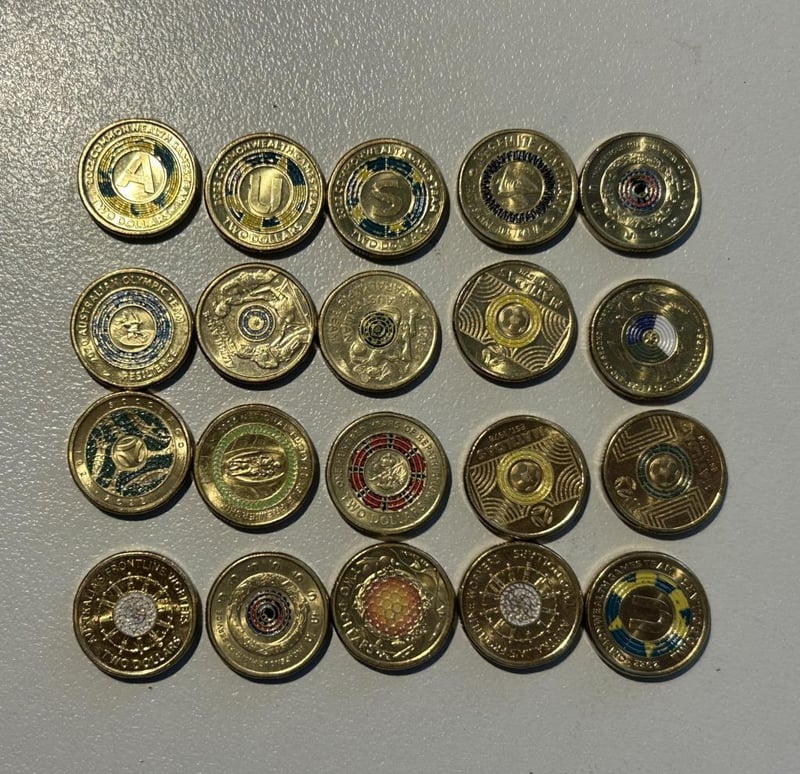 MIXED LOT OF COLOURED TWO DOLLAR COINS 20 CoinsCirculated Condition 233553+46