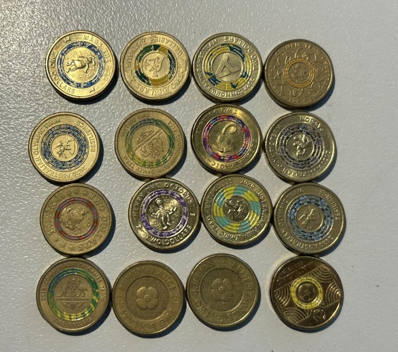 MIXED LOT OF COLOURED TWO DOLLAR COINS 16 CoinsCirculated Condition 233553+47