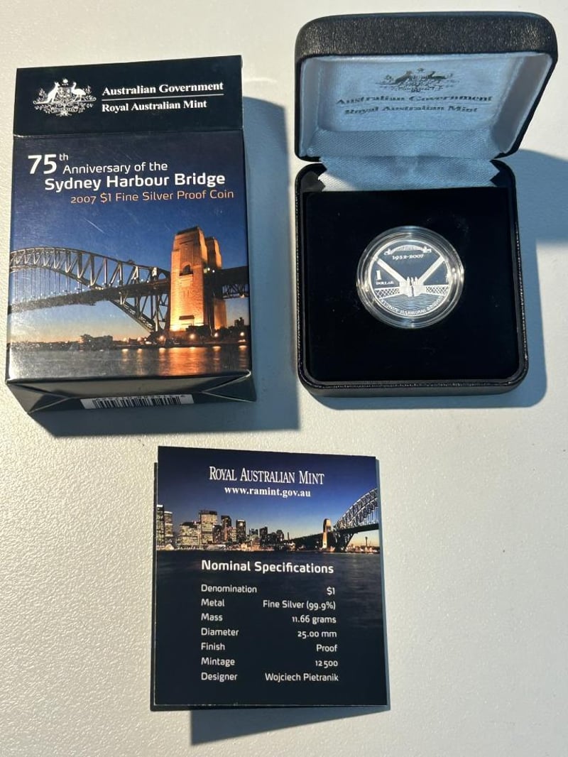2007 ONE DOLLAR SYDNEY HARBOUR FINE PROOF SILVER COIN IN CASE 11.66 Grams 92.5% Silver Condition: Proof233553+71