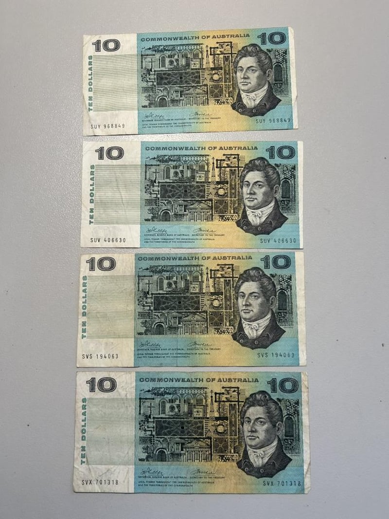 4 X TEN DOLLAR (C OF A) NOTES Circulated Condition 233553+89