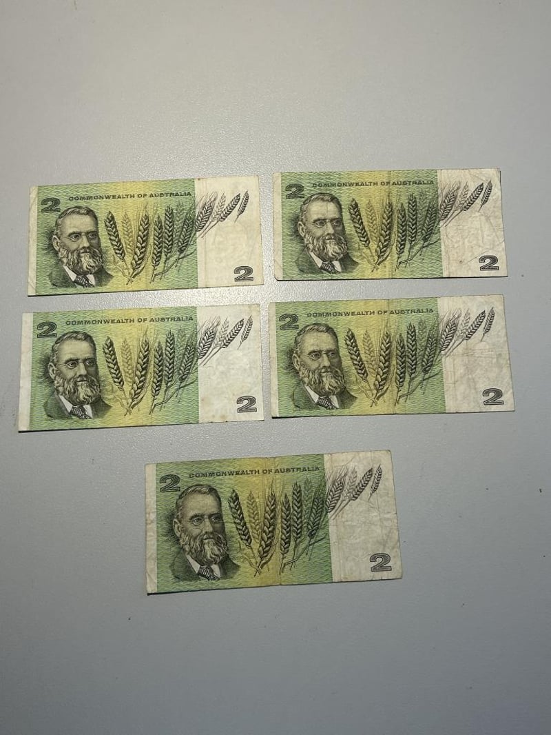 5 X TWO DOLLAR PHILLIPS/WHEELER (C OF A) R 84Circulated Condition 233553+103