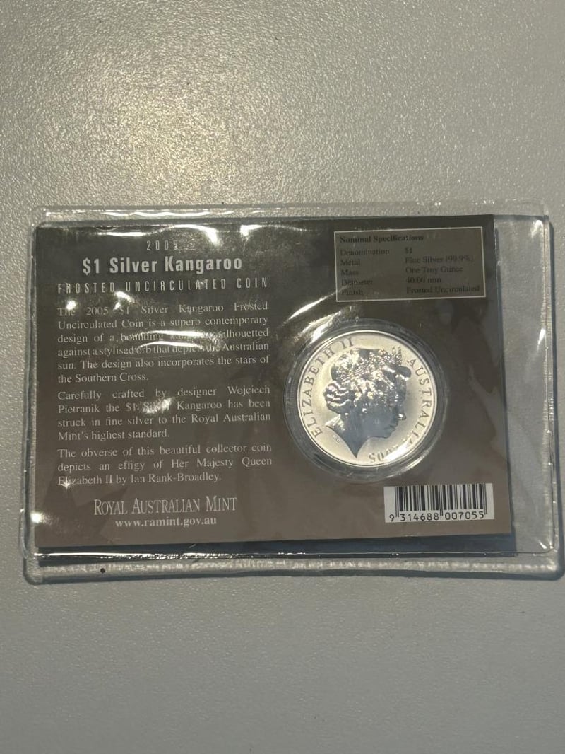 2005 ONE DOLLAR KANGAROO SILVER PROOF COIN 1 Troy Ounce Of 99.9% Silver Condition: proof233554+9