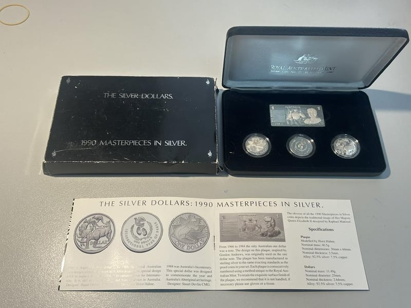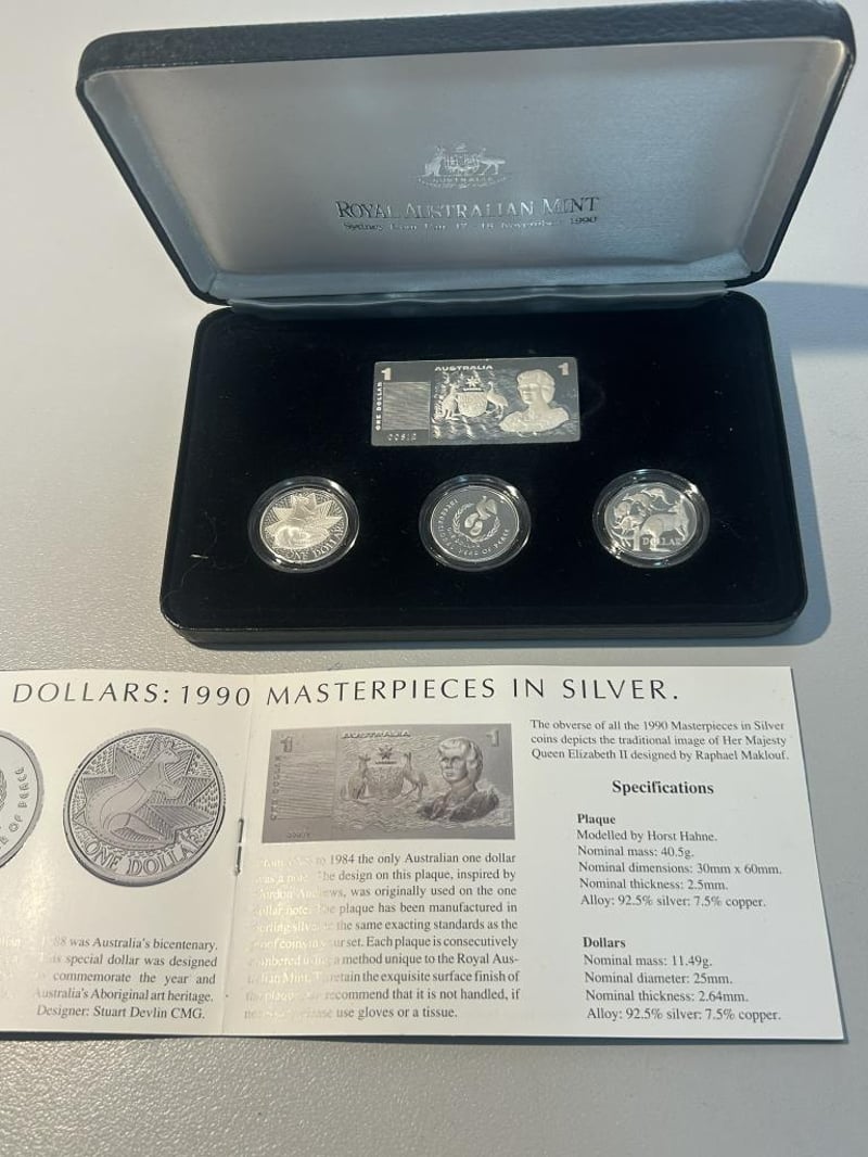 1990 THE SILVER DOLLARS MASTERPICE IN SILVER 74.97 Grams @ 92.5% Silver 2.13 Oz Condition: proof233554+12