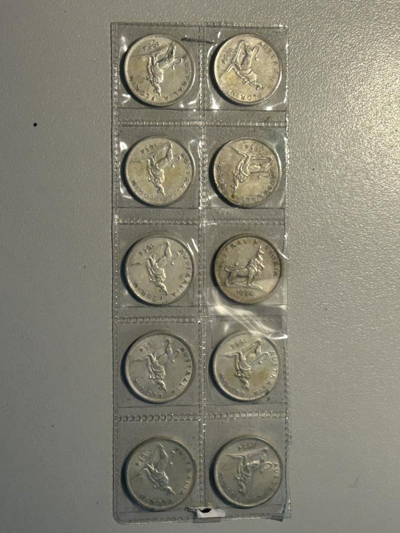 10 X 1954 FLORINS 113.1 Grams @ 50% Silver 1.76Oz Silver Condition: unc233554+27