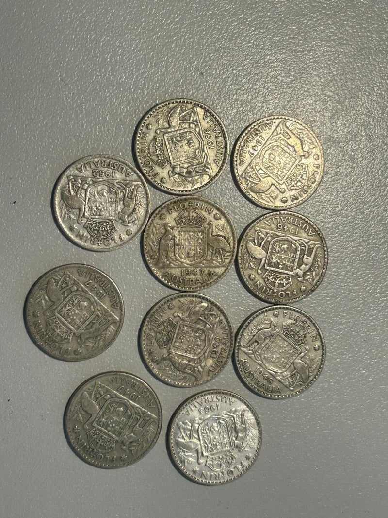 10 X FLORINS 113.1 Grams @ 50% Silver 1.76Oz SilverCirculated 233554+33