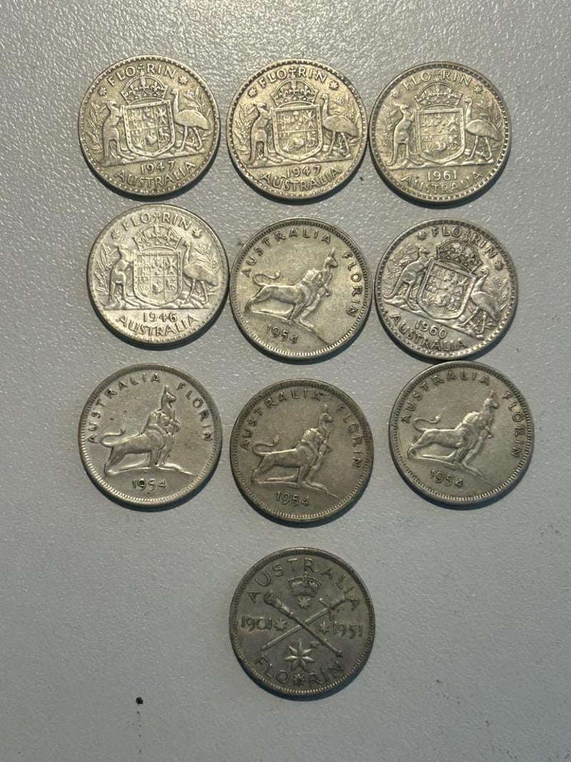 10 X FLORINS 113.1 Grams @ 50% Silver 1.76Oz SilverCirculated 233554+38
