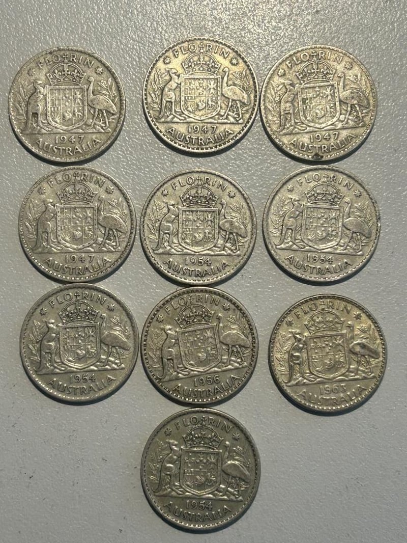 10 X FLORINS 113.1 Grams @ 50% Silver 1.76Oz SilverCirculated 233554+40