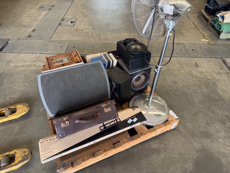 Household Items Including Pioneer Speakers, Panasonic Speakers, Tilt Tv Wall Brackets, Under Desk Footrest and MoreNote: Working Condition Of Items Unknown, Sold As Pallet Lot