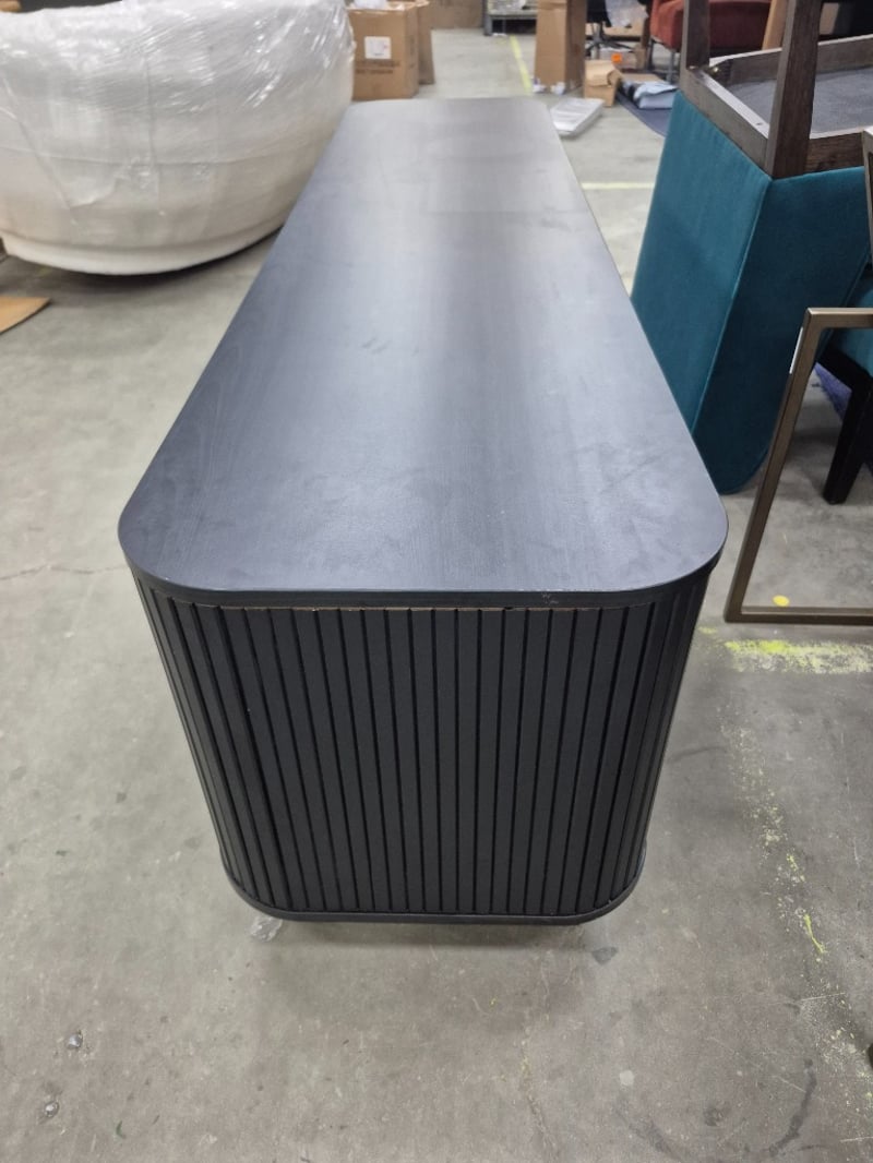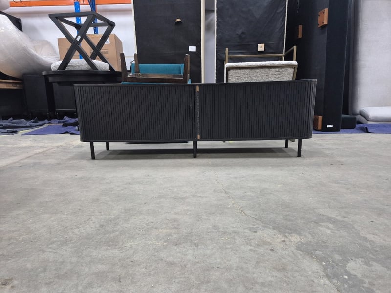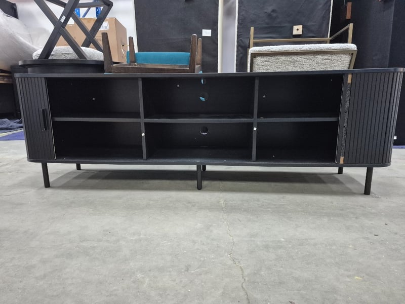 Tv stand black laminate dark wood missing a wooden sectionDimensions Height: 58cm Width: 181cm Depth: 45cm