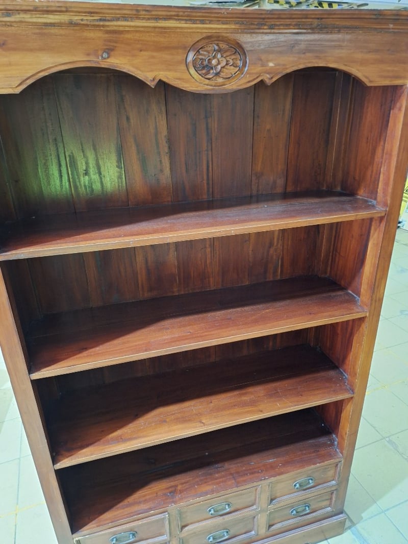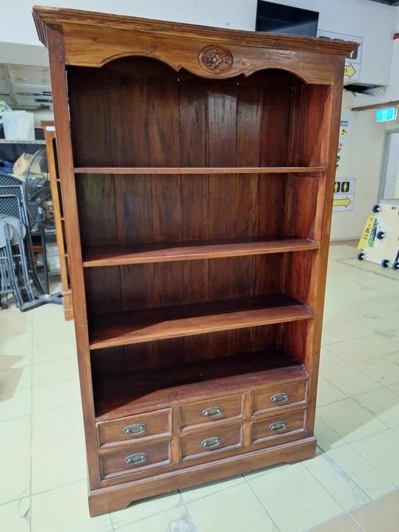 Bookcase With Drawers, Timber Style, Brown FinishDimensions H:190cm W:116cm D:36cm