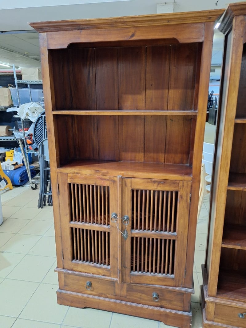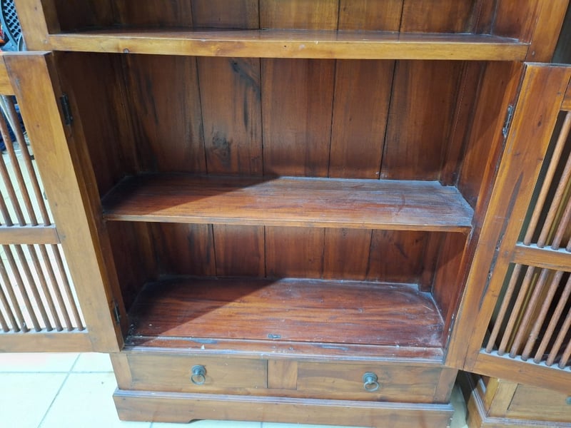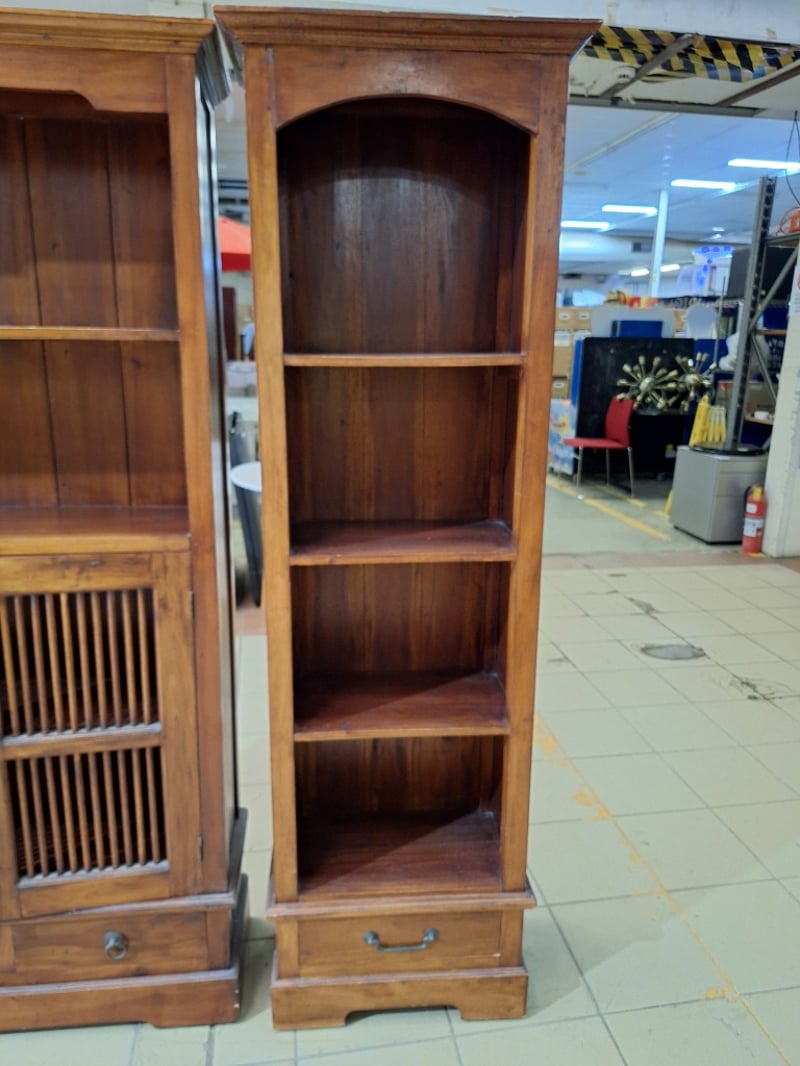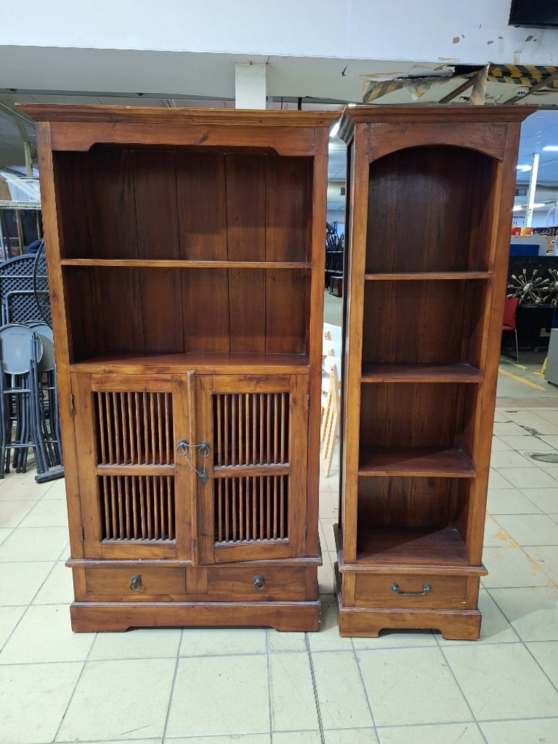 X2 Bookcases With Drawers, Timber Style, Brown Finish