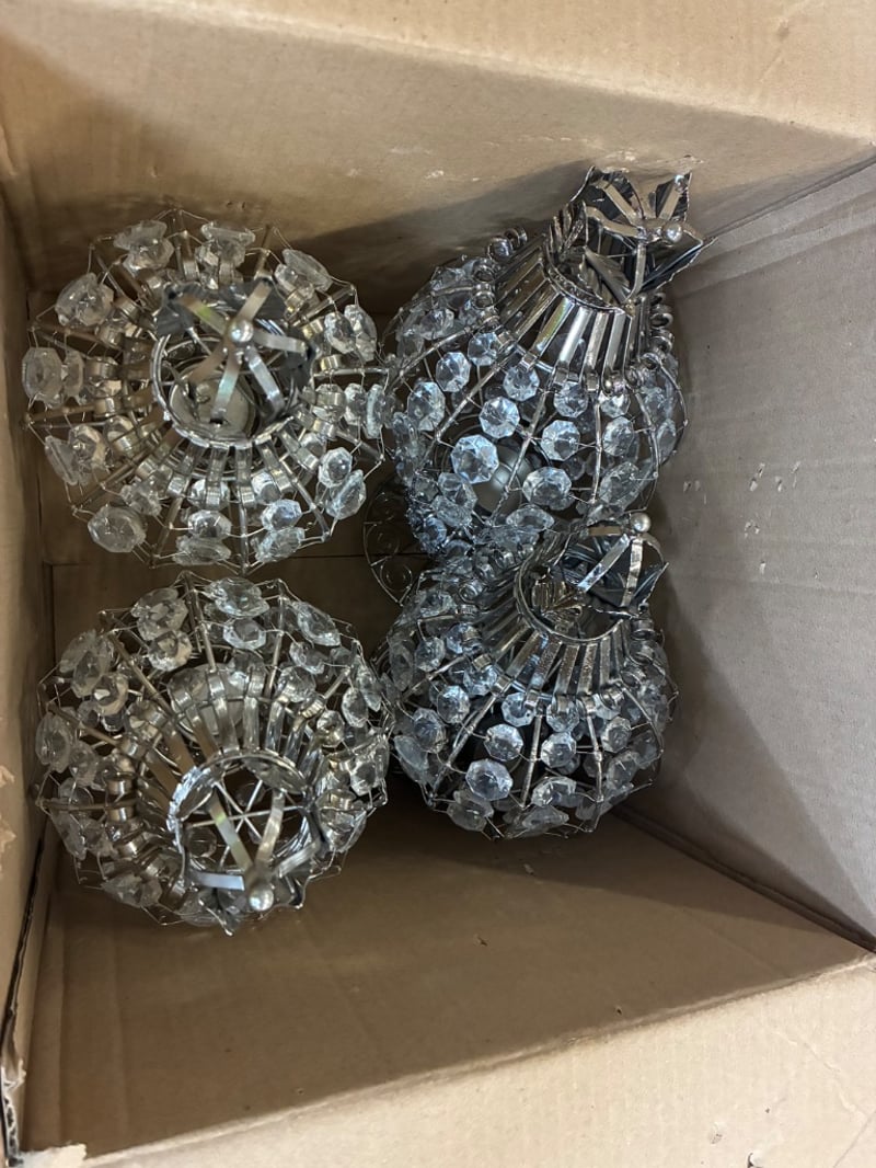 Boxes of decorative wire and white stone lamps or lanterns, quantity unknown Dimensions: H: 32cm W: 15cm D: 15cm SOLD AS LOT