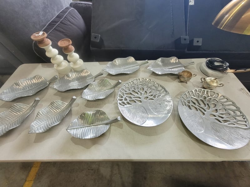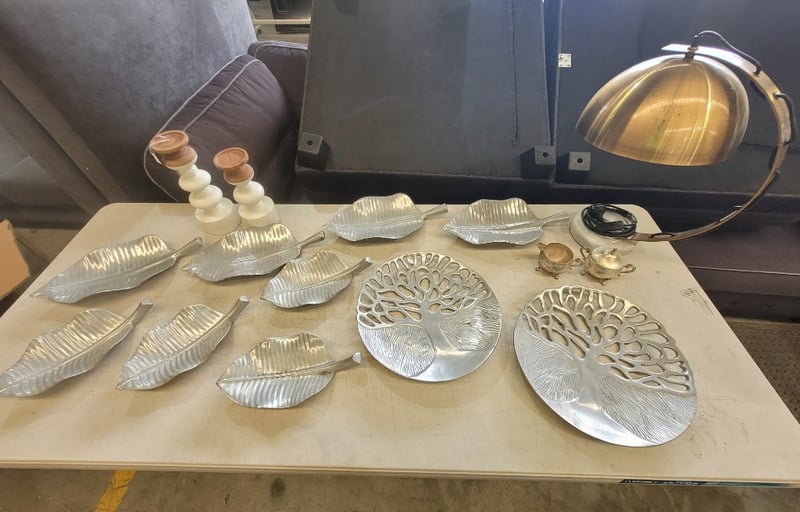 Desk Lamp, Decorative Plates and Ornaments Assorted house décor item's, note size vary, minor damage, lamp unknown working condition.