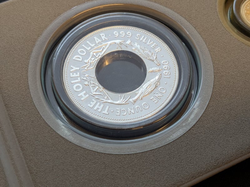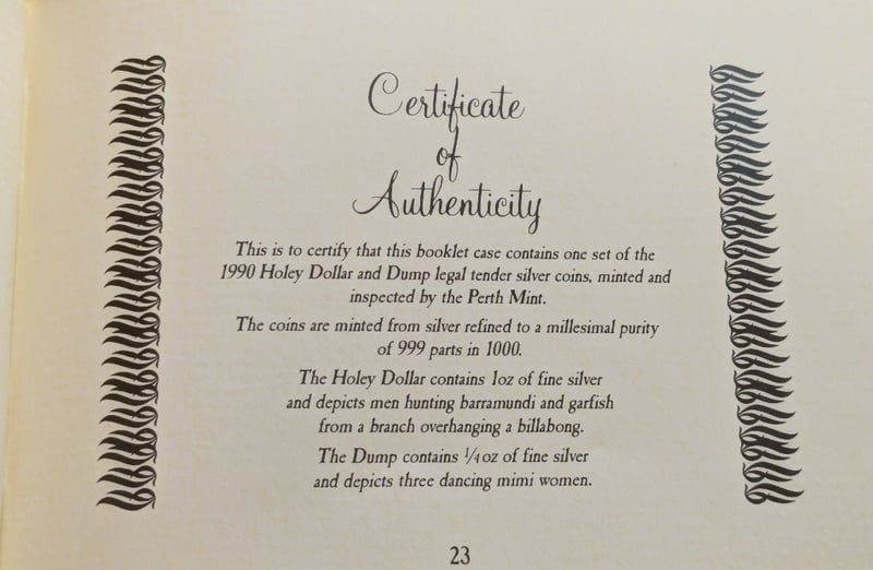 THE PERTH MINT 1990 HOLEY DOLLAR AND THE DUMP SILVER COINSIncludes Certificate Of AuthenticityCondition: Unc584429+71