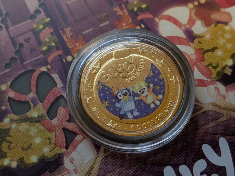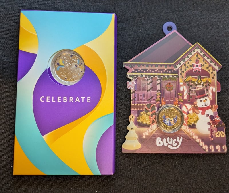 ROYAL AUSTRALIAN 2025 BLUEY ONE DOLLAR BUCK UNCIRCULATED COIN AND 2025 UNCIRCULATED COLOURED FIFTY CENT COINCondition: Unc584429+74
