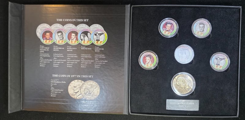 ELVIS 40TH ANNIVERSARY 1977-2017 'THE GREATEST HITS PART 1 COLOURISED' COIN SETCondition: UncACACIA RIDGE584429+97
